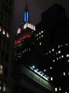 By the time we got out of there, Times Square was packed. I don’t think the police were really expecting that big of a turn out. Since the Western states results were due in about 45 minutes, we decided to stay for entertainment value and to be able to stay that we were there at that historic moment. The crowd was insane. New York is a huge Obama town… I pity the McCain fans who must have been frightened for their lives. When the results were announced, there were people crying, dancing and screaming with joy. As we walked back to the hotel, it seemed as though every New Yorker wanted to give someone a hug, even random strangers.