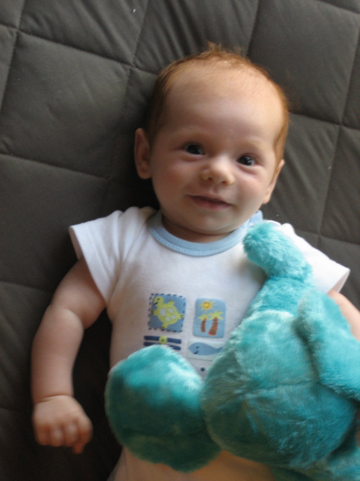 Thomas is exactly 12 weeks old today and has doubled in weight since birth. I am enjoying every second that I get to spend with him. He is smiling and laughing now and can roll over from front to back. It is most likely that he will begin to crawl within the next 4-6 weeks which means Roger and I need to get going on the baby proofing of the house.