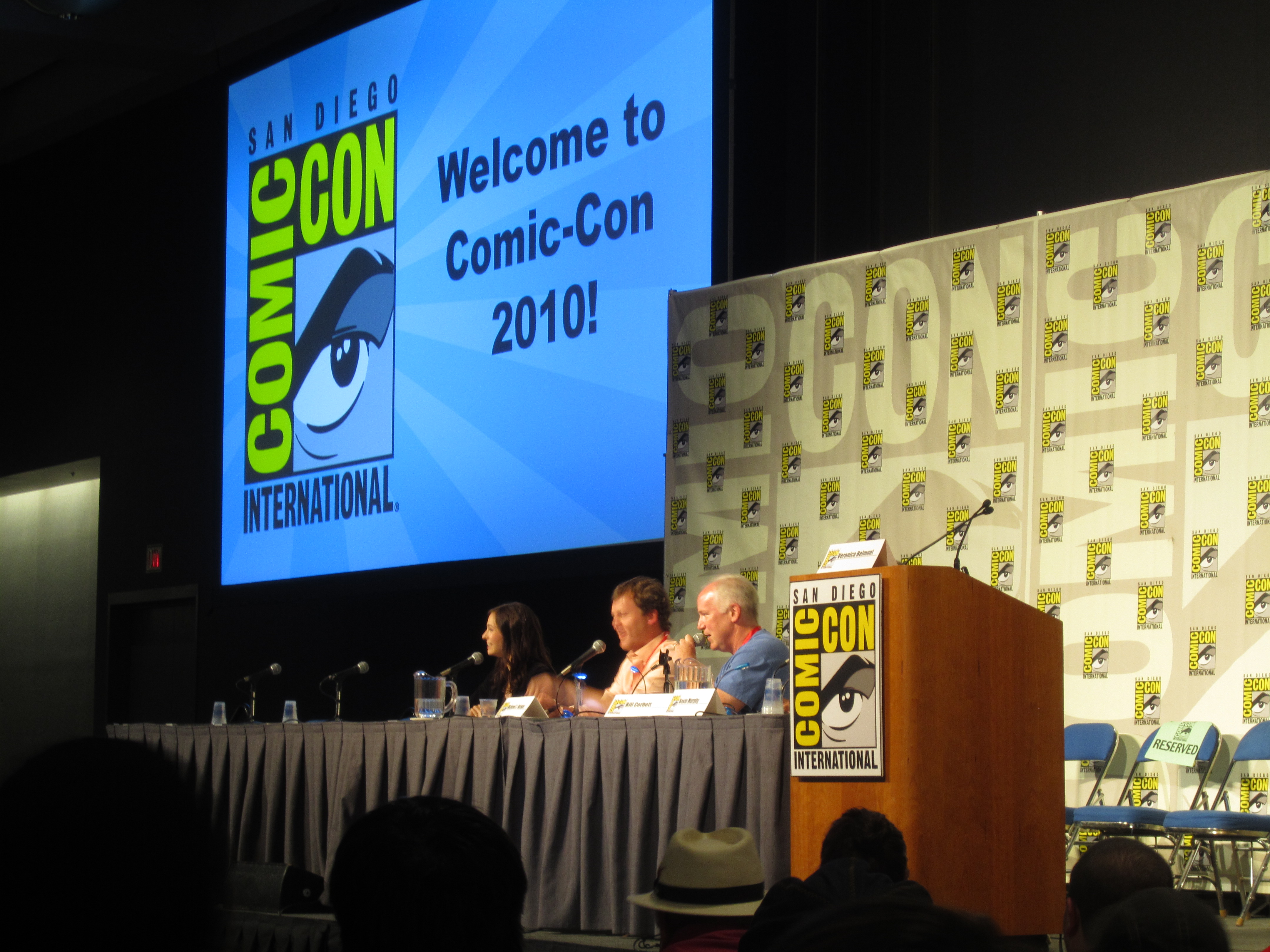 After hanging around the exhibit hall for a few hours, I went to secure my place in the surprising non-existant line. Well, I was there three hours before the session. So I managed to get a little writing in before jumping into a session with an unknown panel (at least to me). The panel after that was from the Cartoon Network. With each panel, I moved closer to score an awesome seat front and center (plus two for my friends). I am sly.