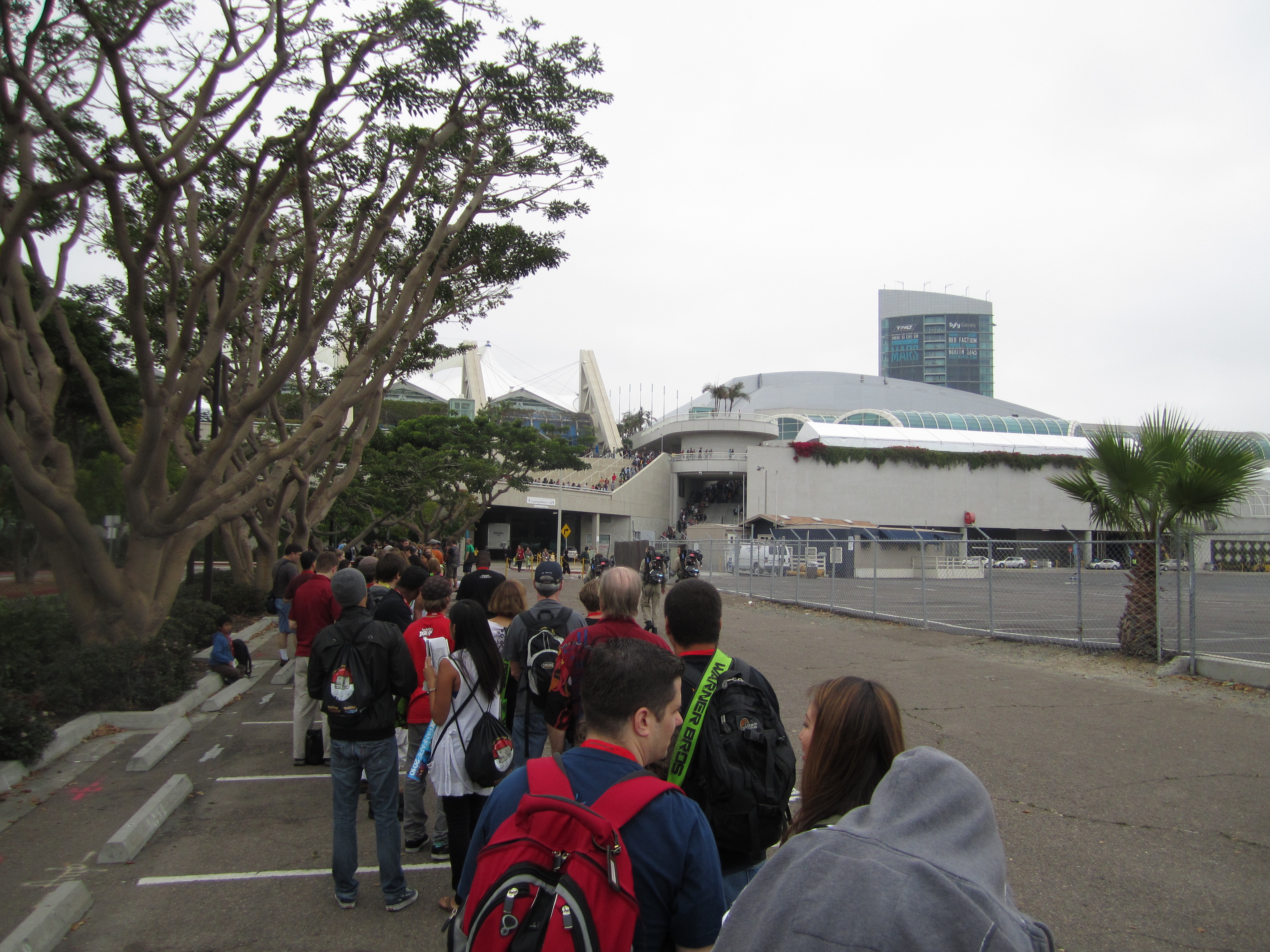 Saturday morning, I gathered my peeps to head down to stand in line. They headed over to the massive cattle herd that is Hall H while I went over to the sails pavilion to try to score a ticket for an autograph from Ray Bradbury and his official biographer, Sam Weller. I was told to head over to the lobby of Ballroom 20. Sweet, it looked like there was may only 100 people in line. As I was about to jump in line, the security informed me the line was outside on the stairs. When I got outside, I saw that the line winded up and down the stairs three times. As I headed towards the bottom of the stairs, the people in line pointed across the street towards Embarcadero Park, “This line begins down there.”